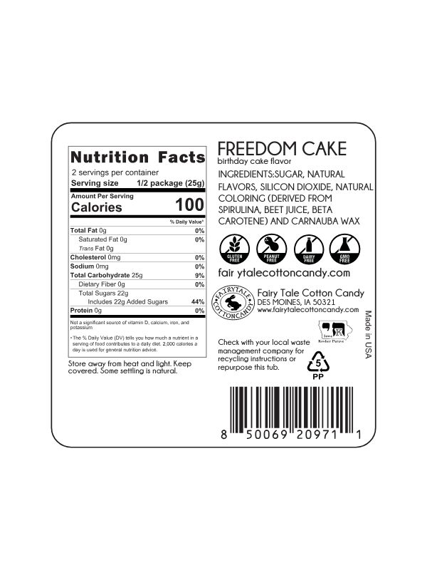 The upcoming celebration of America’s 250th birthday just got sweeter. Freedom Cake Cotton Candy features a classic white cake flavor with bursts of red and blue sanded sugar. This limited-edition treat is festive, nostalgic, and unlike anything you’ve tasted before. Celebrate freedom with every fluffy bite!