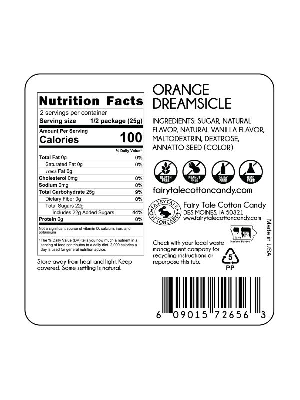 Orange Dreamsicle Cotton Candy is an all-natural flavor that’s most popular with kids!