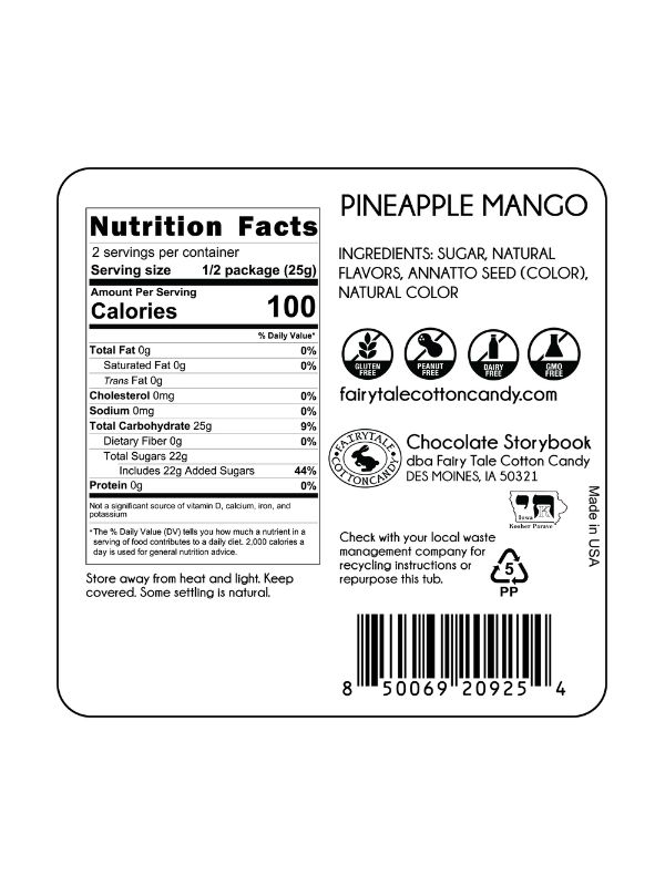 Pineapple Mango Cotton Candy is a top selling fruity flavor. It combines the juicy flavors of pineapple and mango swirled into a fluffy tub.
