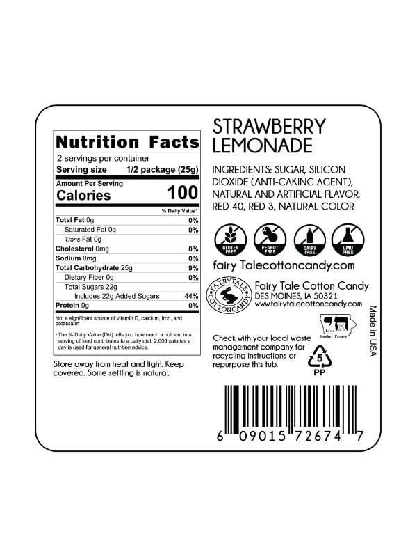 Sweet and tangy, enjoy the taste of fresh strawberries and tart lemons swirled together in a tub of Strawberry Lemonade Cotton Candy.
